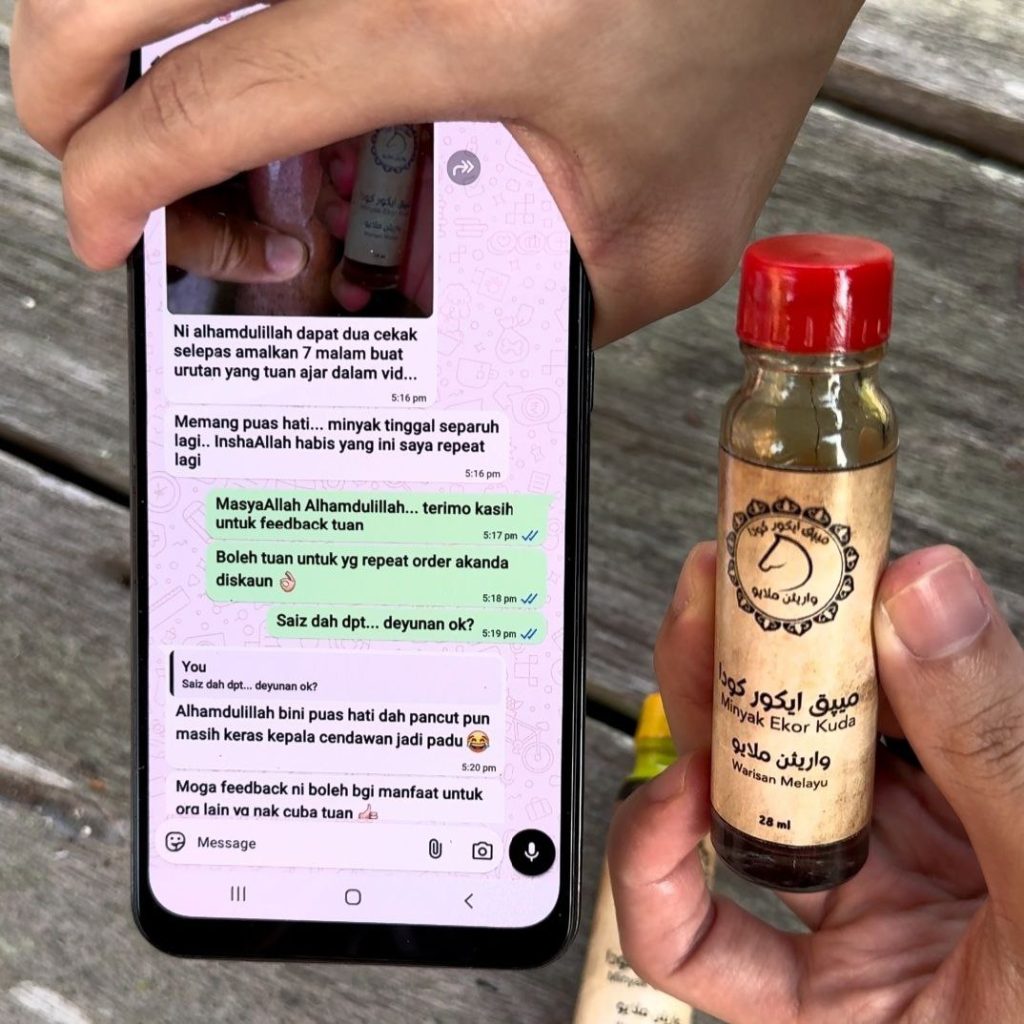 Bahan utama Ekor Kuda & Peluh Kuda dan kami menggunakan Minyak Zaitun Premium.